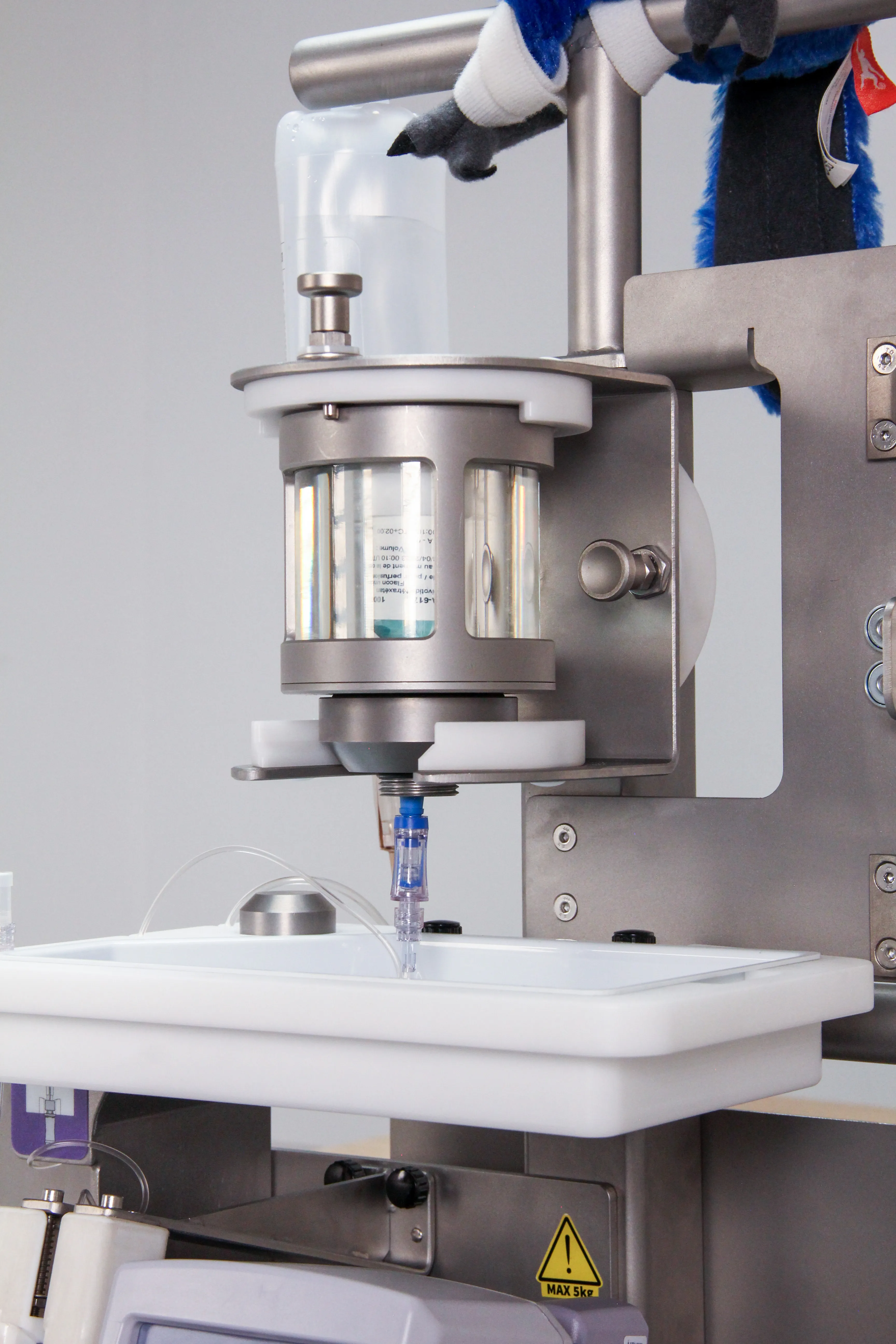 Fläschchenhalter mit Abschirmung – Reduziert das Risiko von Kontaminationen und sorgt für eine vollständige Dosisverabreichung.